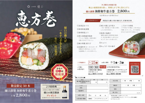 【数量限定50本】「樋口謹製 海鮮和牛恵方巻」ご予約受付開始のお知らせ